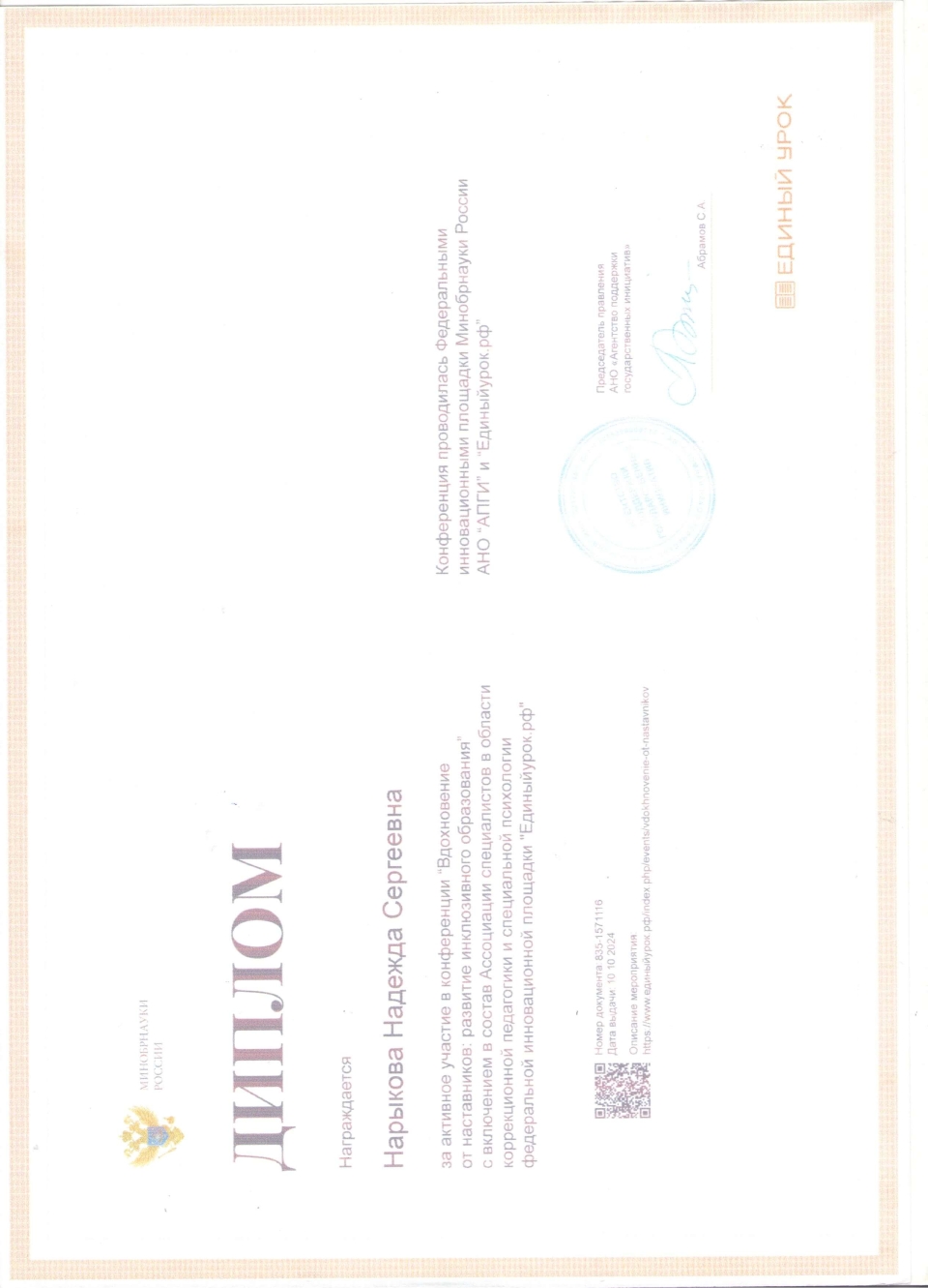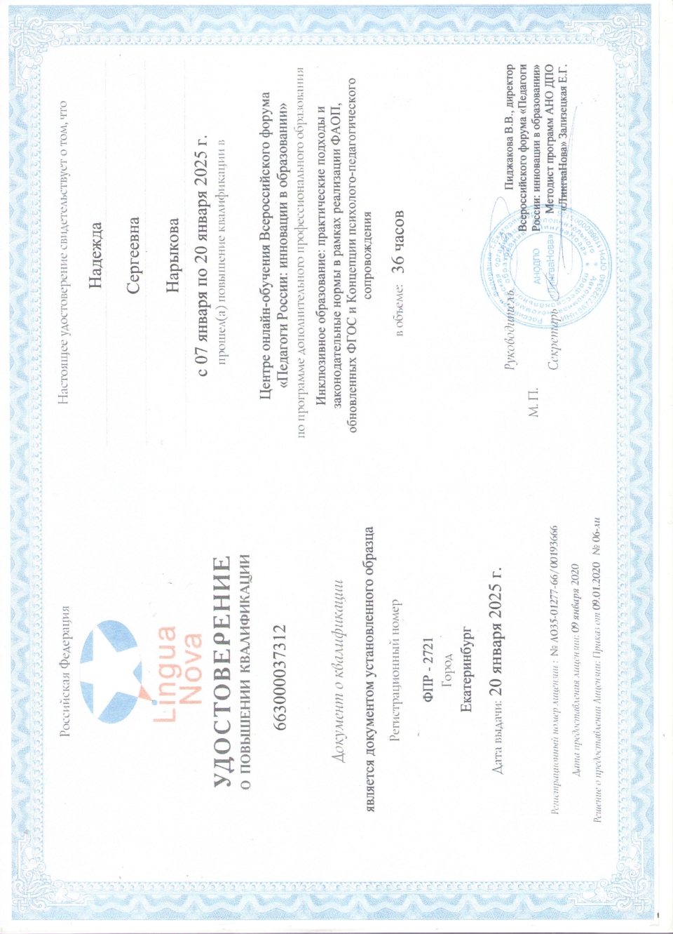 Нарыкова Надежда Сергеевна
