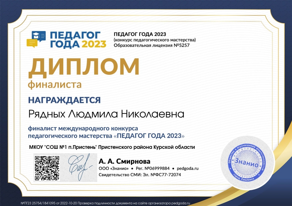 *Диплом финалиста Международного конкурса педагогического мастерства "Педагог года 2023"