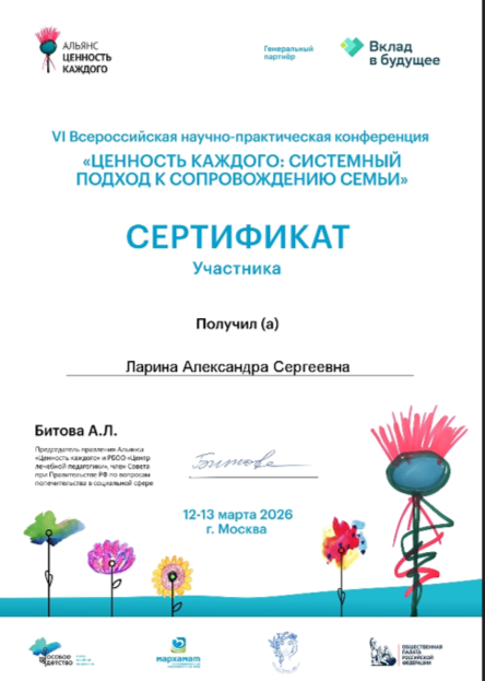 Март 2026 г. г.Москва РБОО "Центр лечебной педагогики" VI Всероссийская научно-практическая конференция "Ценность каждого: системный подход к сопровождению семьи"