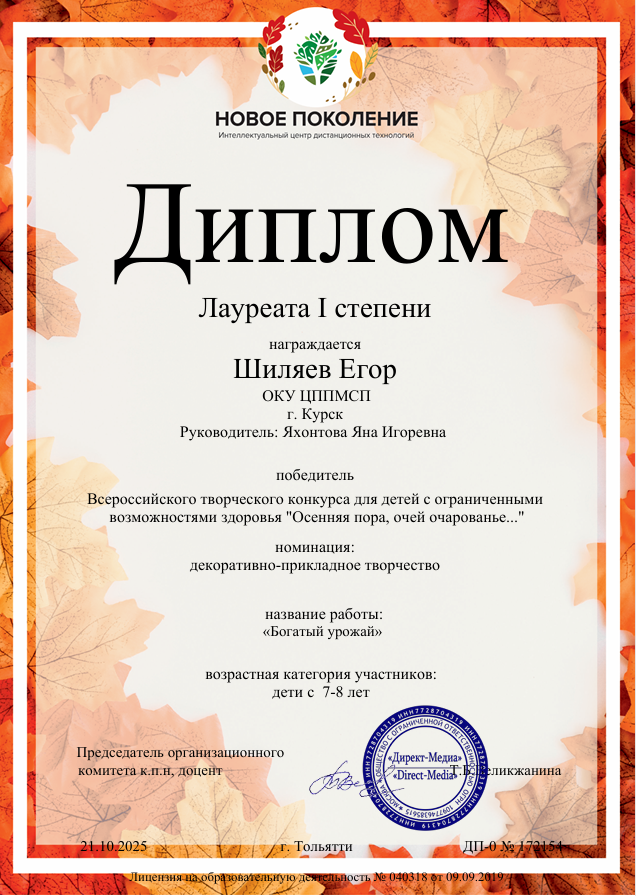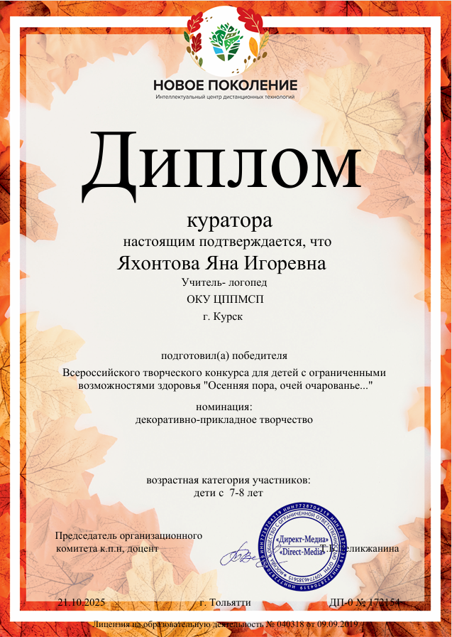 Сведения о награждениях, дипломах 109 10.10.2025 2025 г., Благодарность от ОКУ ЦППМСП за добросовестное исполнение должностных обязаностей и в связи с 20 - летием деятельности центра.