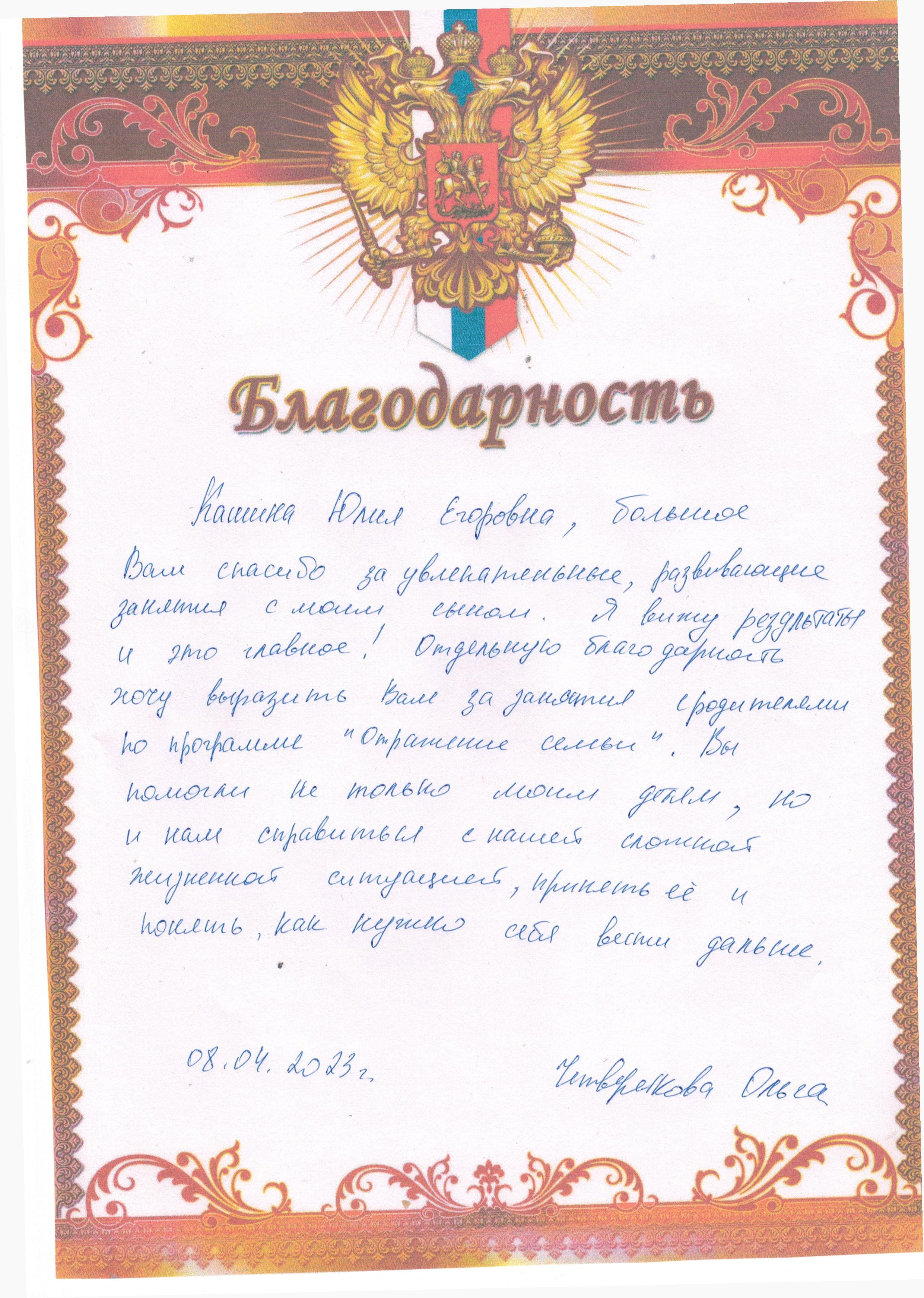 Благодарнсти родителей