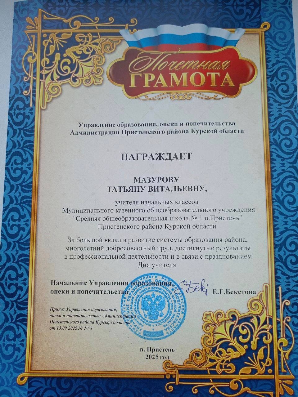 МКОУ "СОШ №1 п. Пристень"