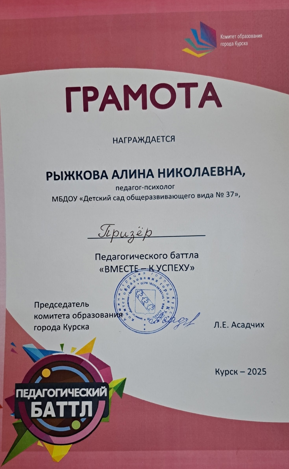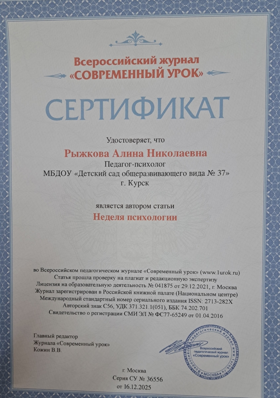 Рыжкова Алина Николаевна