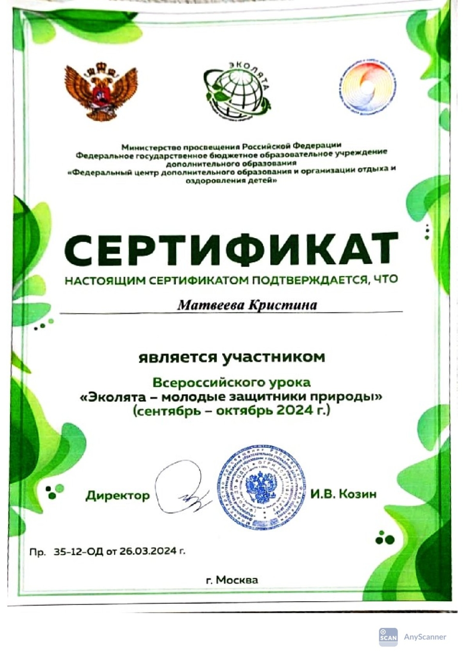 Оксана Владимировна Тяпичева