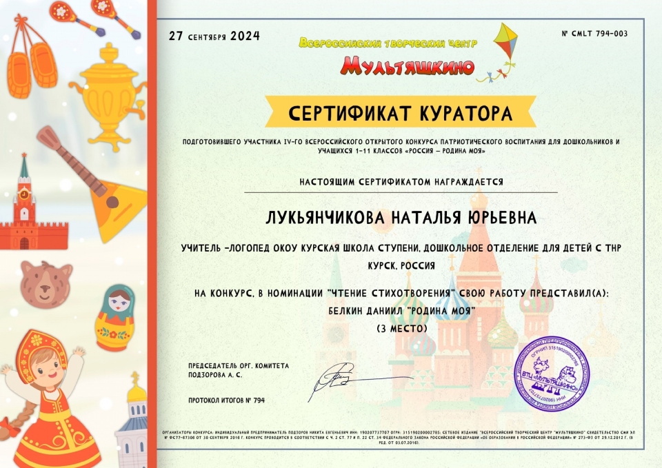 Благодарственные письма