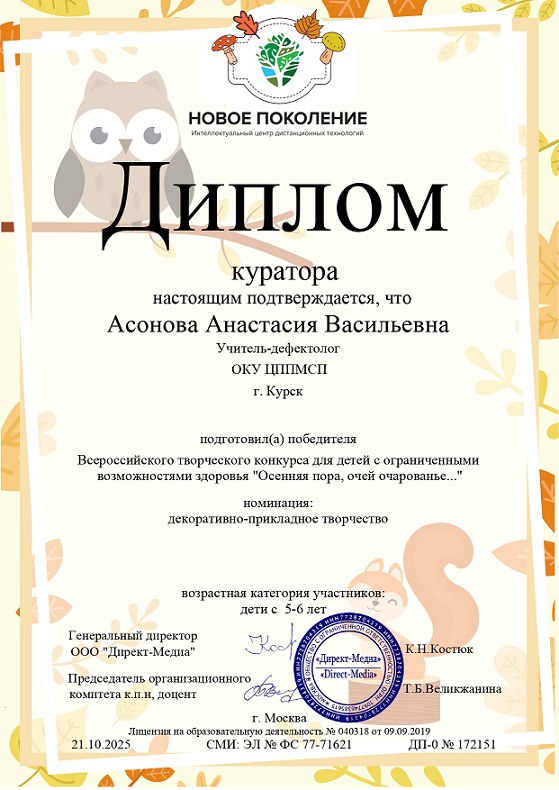 Всероссийский творческий конкурс для детей с ограниченными возможностями здоровья "Осенняя пора, очей очарованье..."