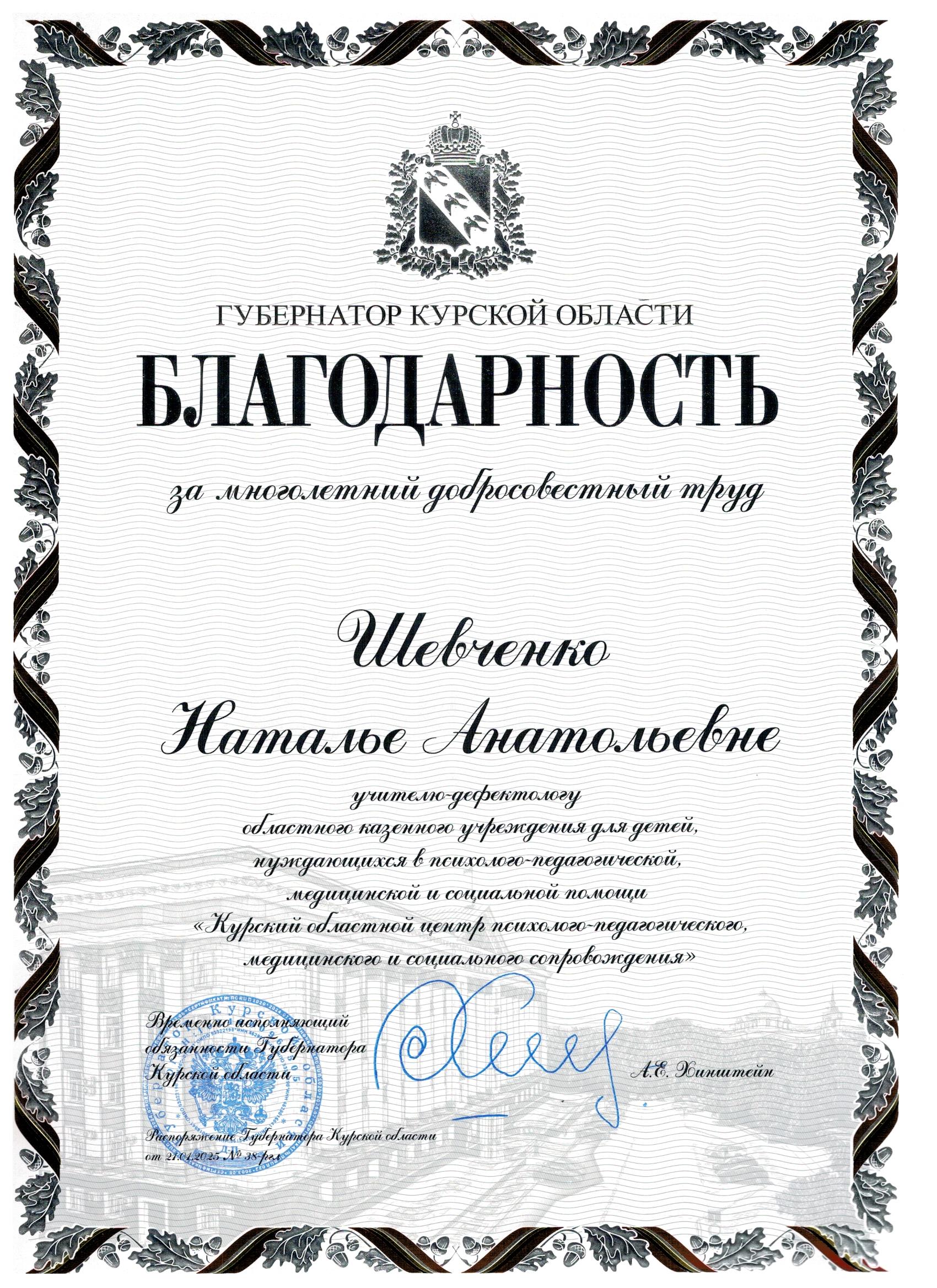СВЕДЕНИЯ О НАГРАЖДЕНИЯХ 1346 15.04.2020 2025 Благодарность губернатора Курской области за многолетний добросовестный труд 2023 год Нагрудный знак Министрства просвещения Российской Федерации 2018 ГОД