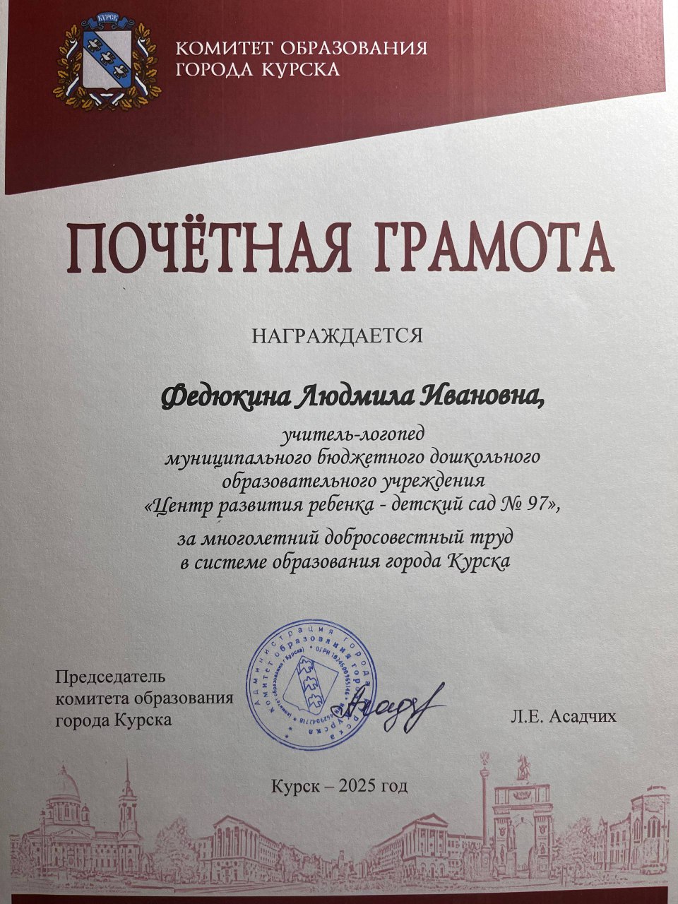 Сведения о награждениях, дипломах