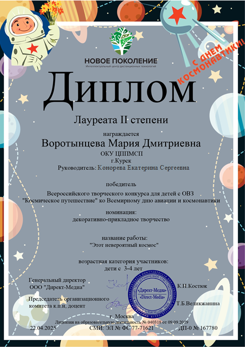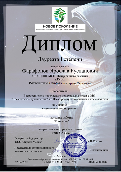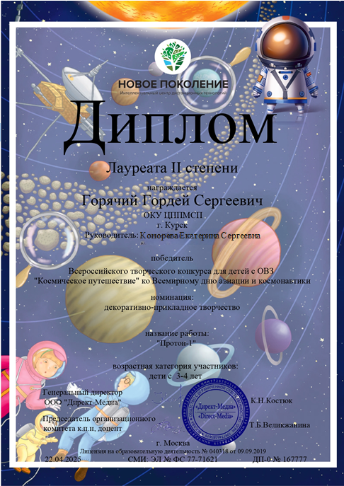 2024г., Диплом 1 степени в Международном научно- исследовательском конкурсе "Молодой исследователь-2024"