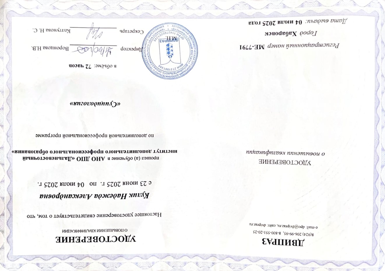 Сведения о повышении квалификации