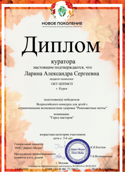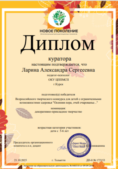 Октябрь 2025 г. Всероссийский творческий конкурс для детей с ограниченными возможностями здоровья «Осенняя пора, очей очарованье»