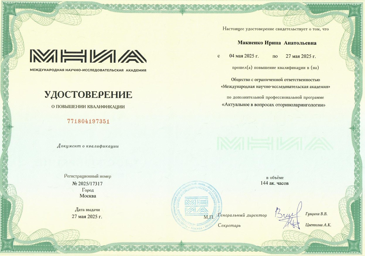 Сведения о наличии допуска к медицинской деятельности по специальности