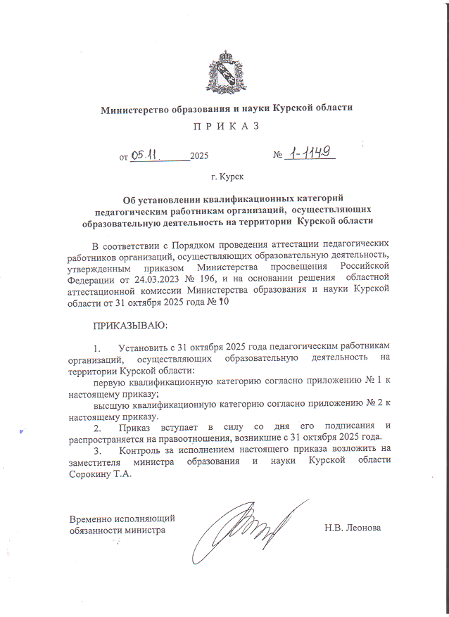 Квалификационная категория 1464 23.02.2020 ВЫСШАЯ КВАЛИФИКАЦИОННАЯ КАТЕГОРИЯ (Приказ № 1-1149, от 05.11.2025г.)