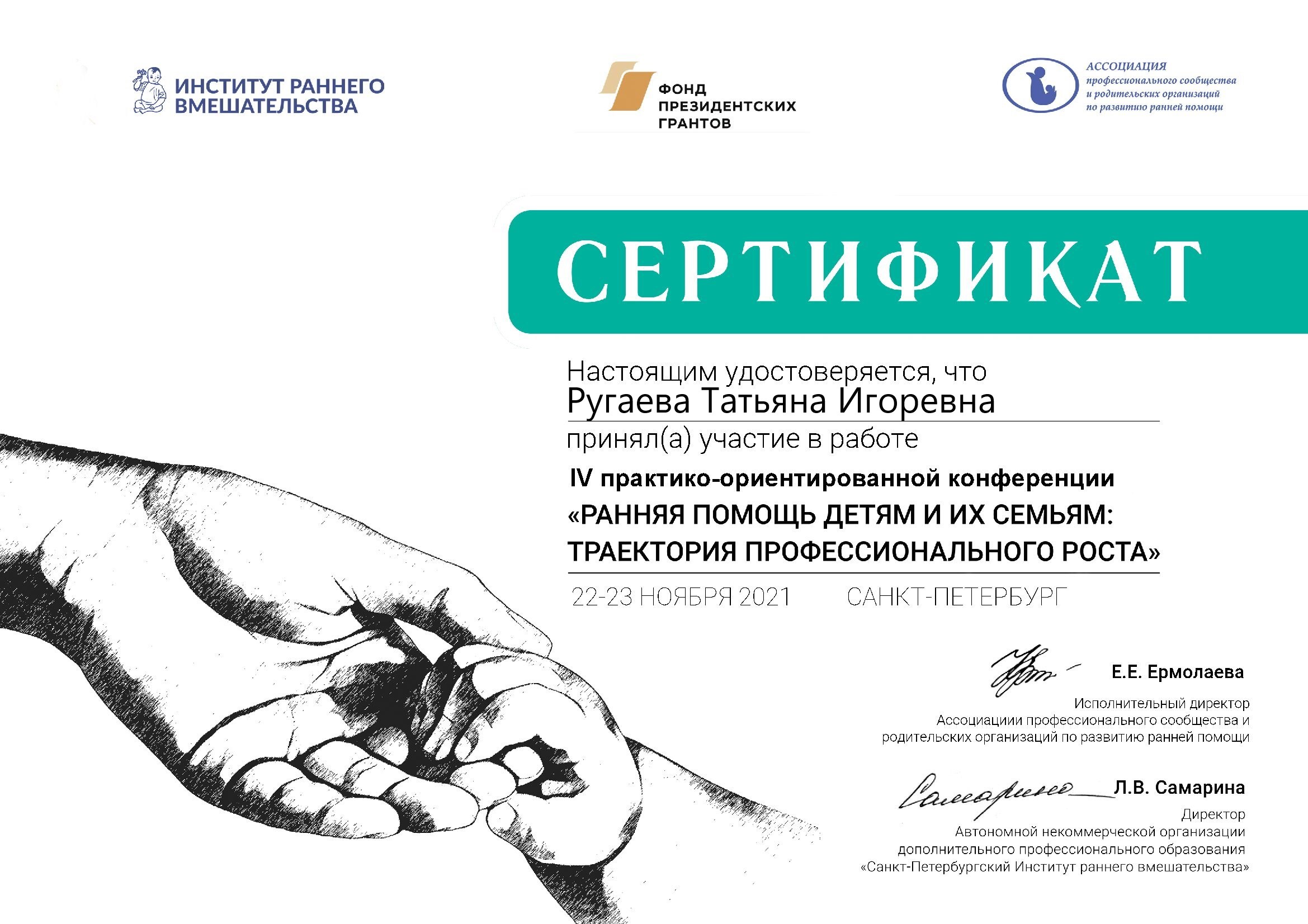 Участник IV практико-ориентированной конференциии "РАННЯЯ ПОМОЩЬ ДЕТЯМ И ИХ СЕМЬЯМ:ТРАЕКТОРИЯ ПРОФЕССИОНАЛЬНОГО РОСТА"