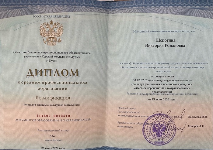 Среднее профессиональное образование. Курский колледж культуры. Июль 2020 г.