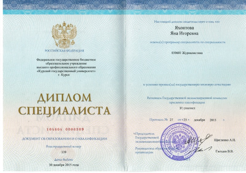 Яхонтова Яна Игоревна