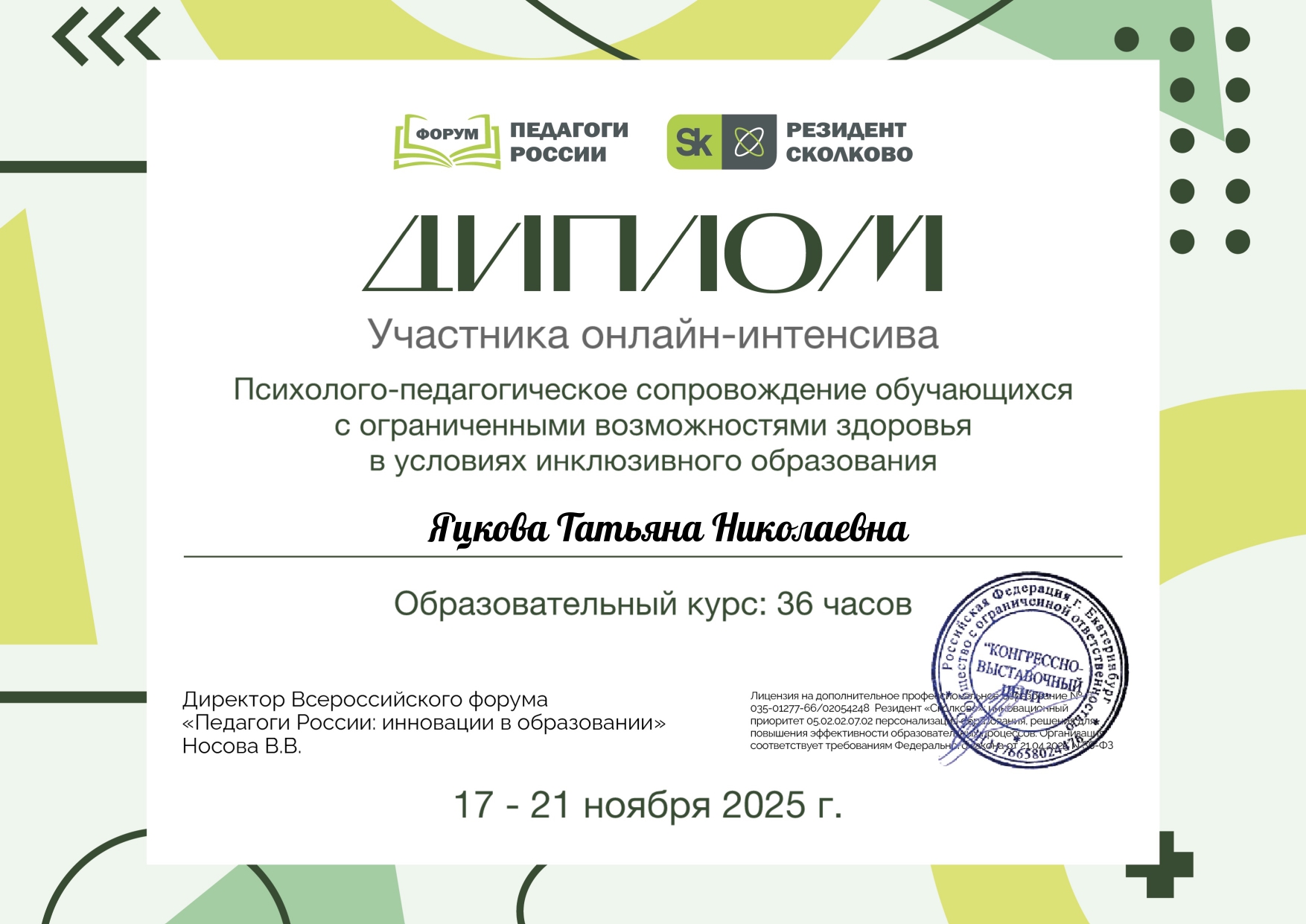 2025 г. "Психолого-педагогическое сопровождение обучающихся с ОВЗ в условиях инклюзивного образования", 36 ч.