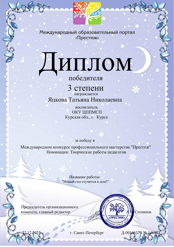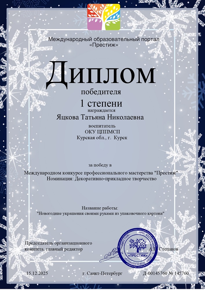 2025 г. Международный конкурс профессионального мастерства "Творческие работы педагогов" "Престиж"