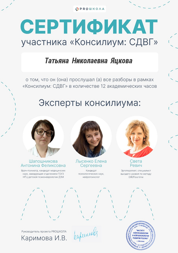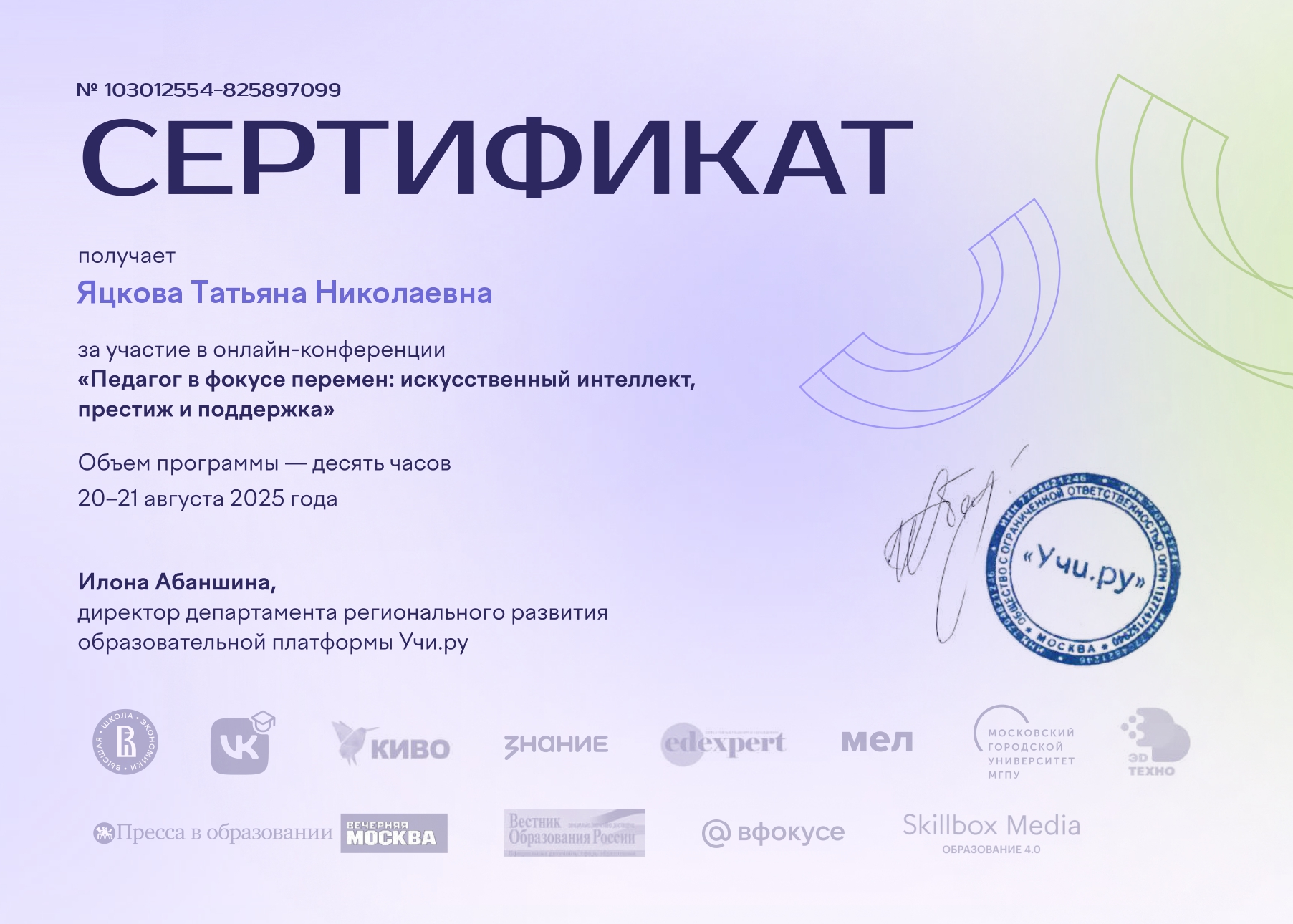 2025 г. Участник курса повышения квалификации "Нейропедагогика и когнитивные аспекты обучения в работе педагога по ФГОС"