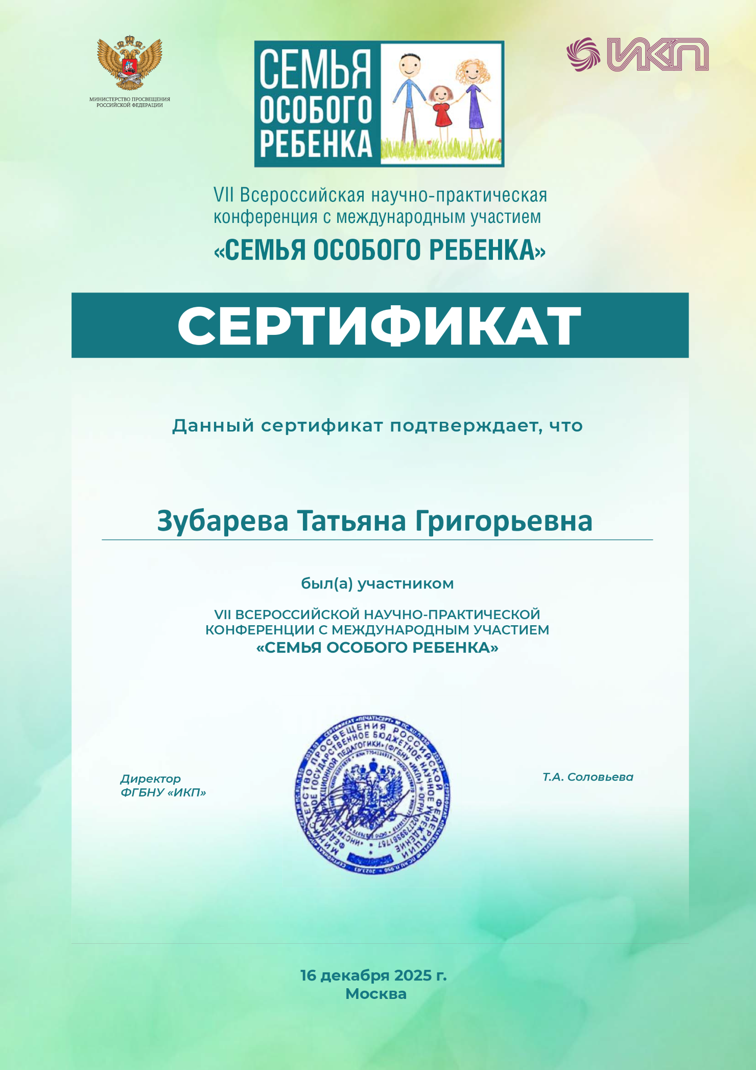 Зубарева Татьяна Григорьевна